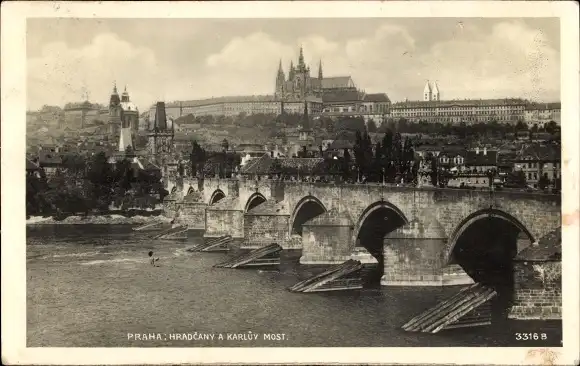 Ak Praha Prag, Hradschin, Karlsbrücke, Stadtansicht