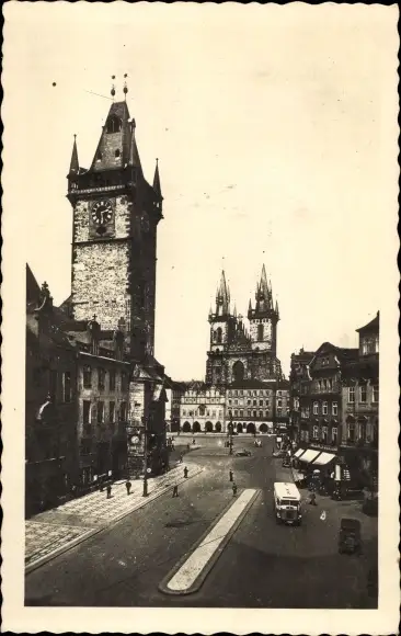 Ak Praha Prag Tschechien, Altstädter Ring, Kirche, Bus