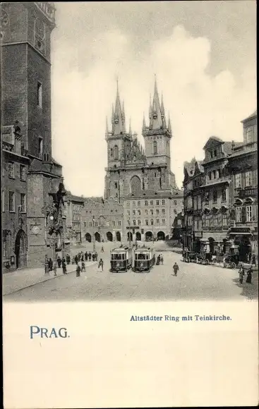 Ak Praha Prag Tschechien, Altstädter Ring mit Teinkirche, Straßenbahnen