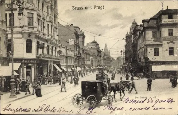 Ak Praha Prag Tschechien, Graben, Kutsche, Geschäfte