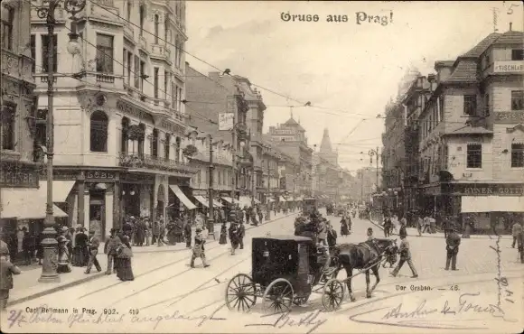 Ak Praha Prag Tschechien, Graben, Straße, Kutsche, Verkehr