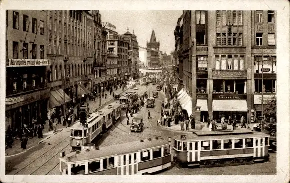 Ak Praha Prag Tschechien, Graben, Straßenbahn Linie 22
