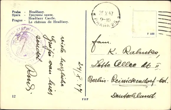 Zustand, siehe Scan, gelaufen, 1947 - ca 14 cm X 9 cm
