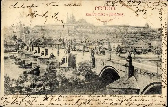 Ak Praha Prag Tschechien, Hradčany, Hradschin, Karluv most, Karlsbrücke
