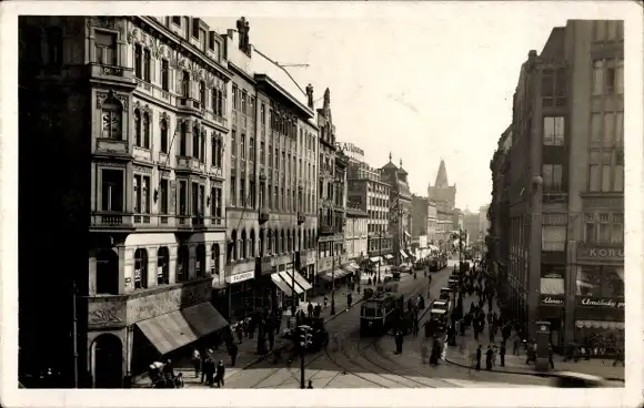 Ak Praha Prag Tschechien, Hradčany Hradschin, Příkopy, Straßenbahn