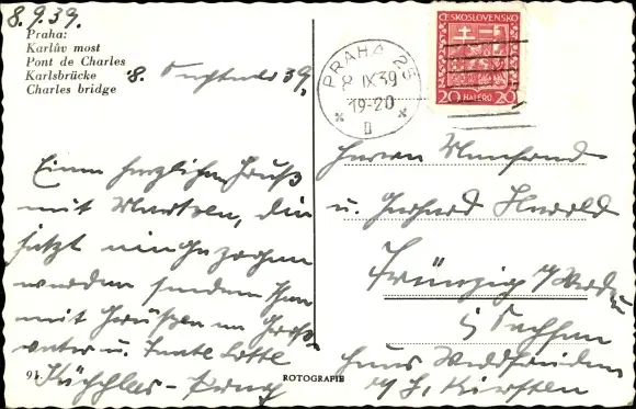 Zustand, siehe Scan, gelaufen, 1939 - ca 14 cm X 9 cm