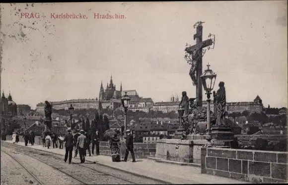 Ak Praha Prag Tschechien, Karlsbrücke, Hradschin