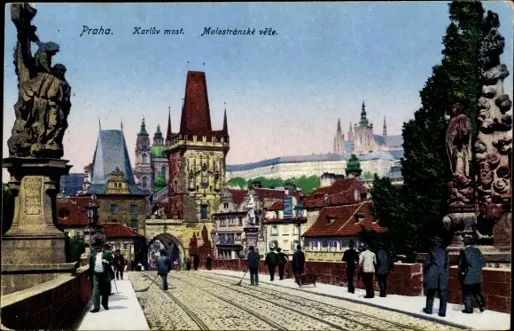 Ak Praha Prag Tschechien, Karluv most, Malostranske veze, Karlsbrücke