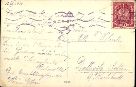 Zustand, siehe Scan, gelaufen, 1918 - ca 14 cm X 9 cm