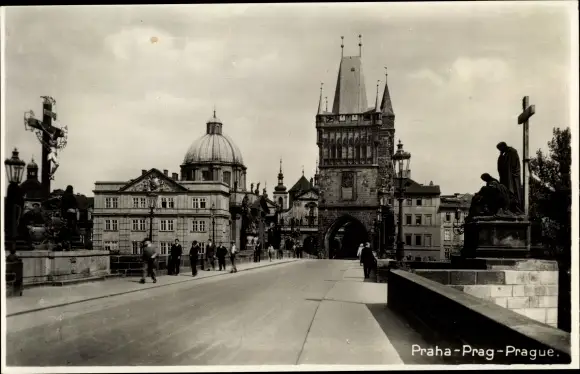 Ak Praha Prag Tschechien, Statuen, Denkmal, Blick auf das Kreuzherrenkloster