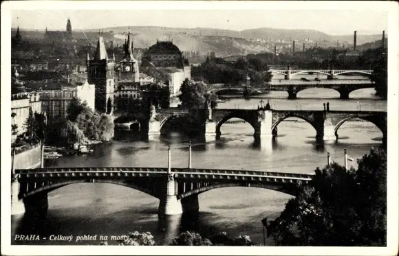 Ak Praha Prag Tschechien, Totalansicht, Brücken