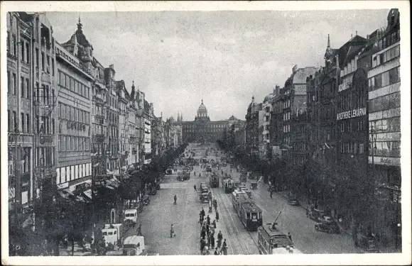 Ak Praha Prag Tschechien, Václavské náměstí, Wenzelsplatz, Straßenbahnen