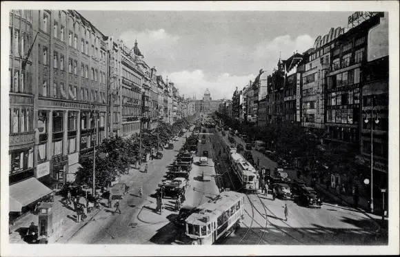 Ak Praha Prag Tschechien, Václavské náměstí, Wenzelsplatz, Straßenbahnen