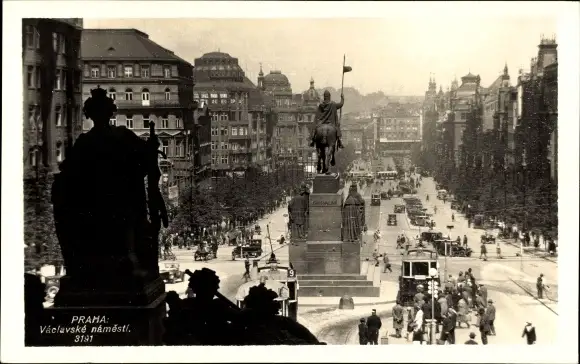 Ak Praha Prag Tschechien, Wenzelsplatz, Denkmal