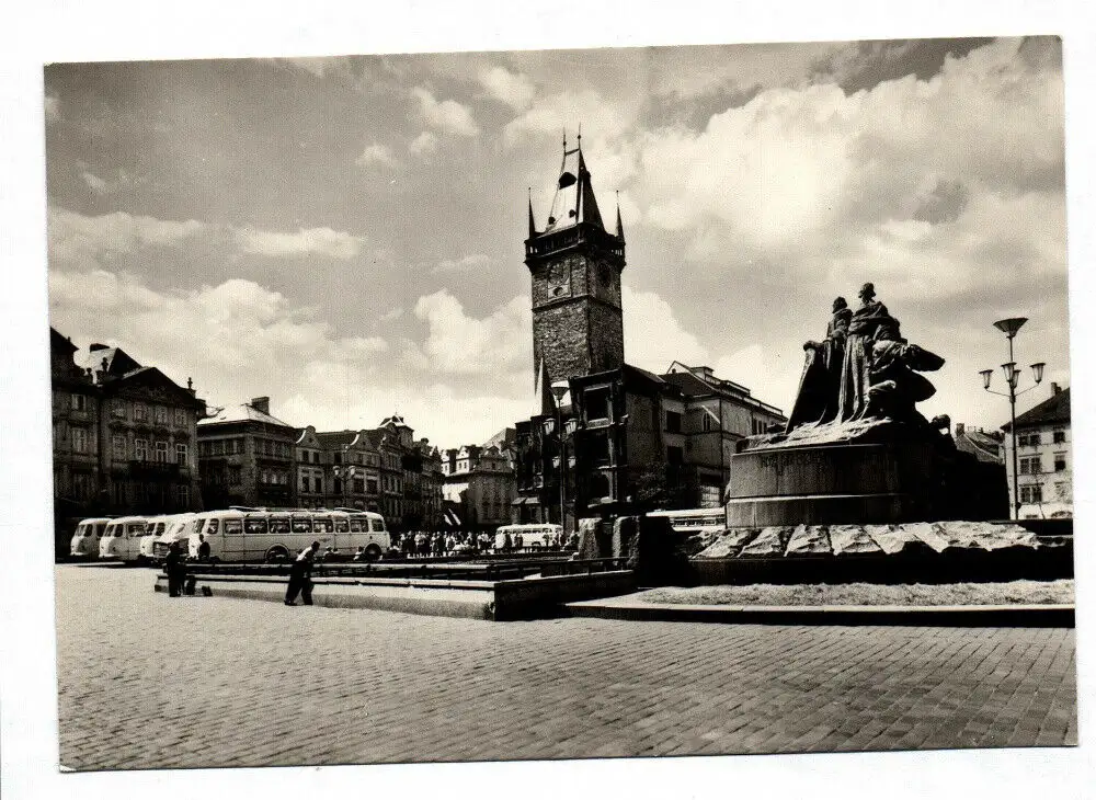 Ak Praha Tschechien Prag Altstädter Ring mit dem Hus-Denkmal und Rathaus