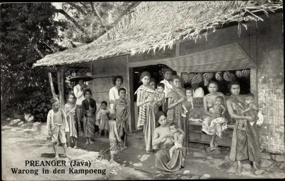 Ak Preanger Priangan Parahyangan Java Indonesien, Warong in den Kampoeng