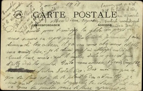 ungelaufen, datiert 1918, Rückseite beschrieben, fleckig, sonst guter Zustand