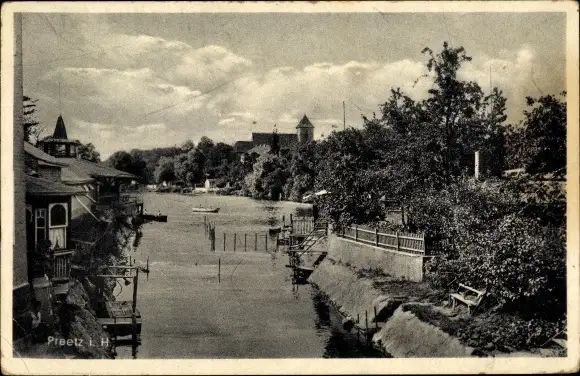 Ak Preetz in Holstein, Flusspartie, Kirche