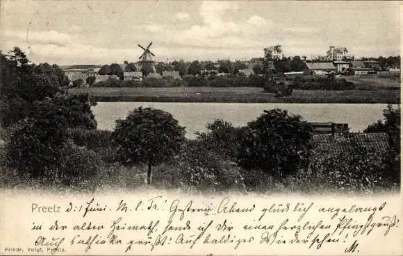 Ak Preetz in Holstein, Gesamtansicht, Windmühle