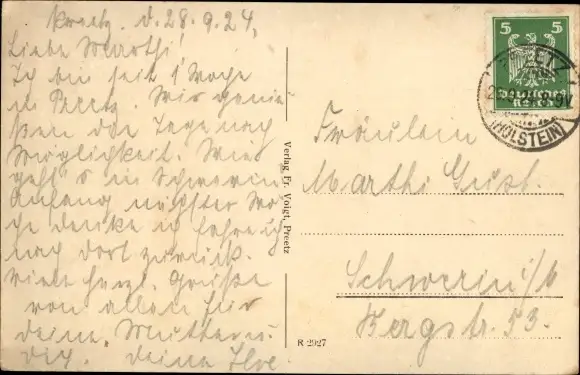 Zustand, siehe Scan, gelaufen, 1924 - ca 14 cm X 9 cm
