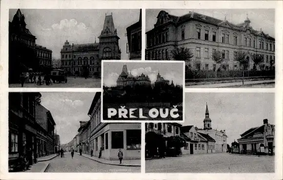 Ak Prelouc Pschelautsch Region Pardubice, Platz, Gebäude, Straßenpartie