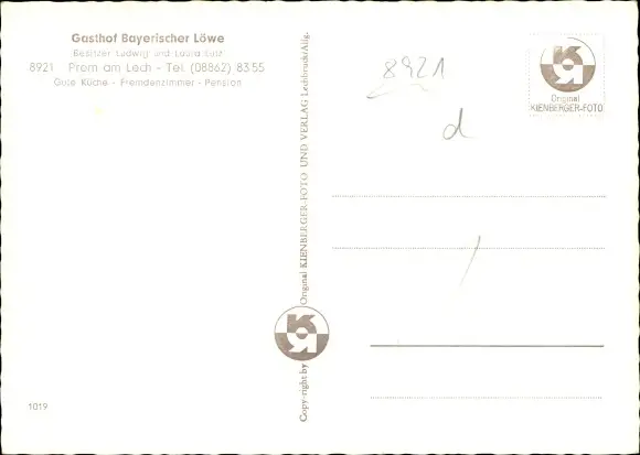 Ak Prem am Lech Oberbayern, Gasthof Bayerischer Löwe, Außenansicht, Speisesaal
