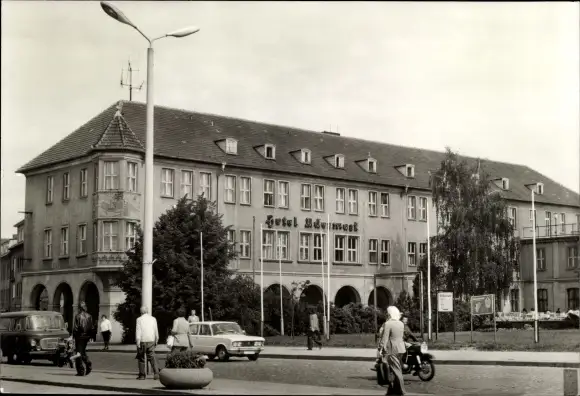 Ak Prenzlau in der Uckermark, Partie am Hotel Uckermark, Autos