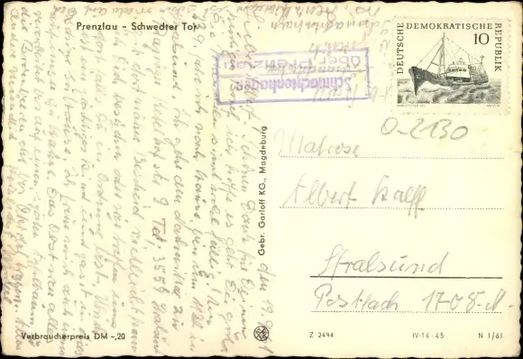 Ak Prenzlau in der Uckermark, Schwedter Tor, Außenansicht
