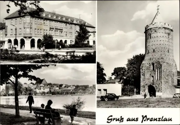 Ak Prenzlau in der Uckermark, Turm, Partie am Ufer