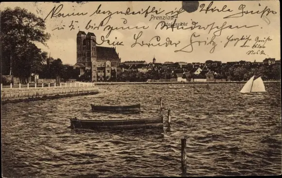 Ak Prenzlau in der Uckermark, Uferpartie, Kirche