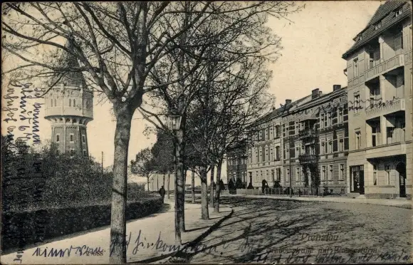 Ak Prenzlau in der Uckermark, Wasserturm, Straßenpartie