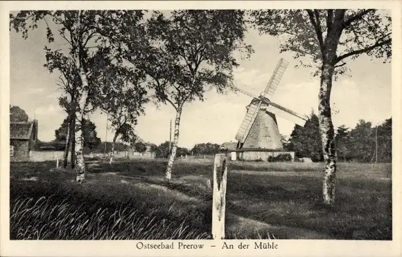Ak Prerow Darß bei Zingst, Partie an der Windmühle