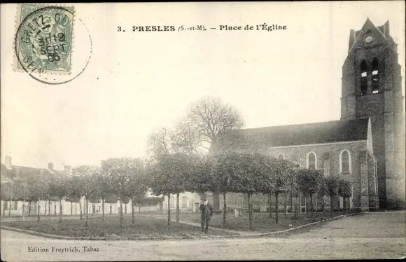 Ak Presles Seine et Marne, Place de l´Église
