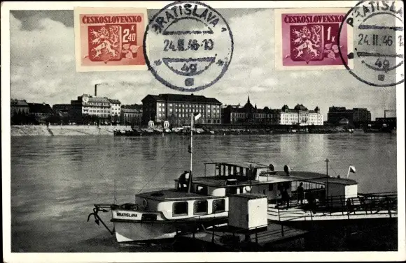 Ak Pressburg Bratislava Slowakei, Fahrgastschiff an der Anlegestelle