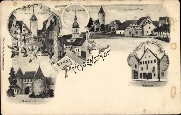 Ak Prichsenstadt in Unterfranken, Rathaus, Oberes Tor, Unteres Tor