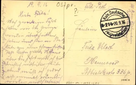 Zustand, siehe Scan, gelaufen, 1920 - ca 14 cm X 9 cm