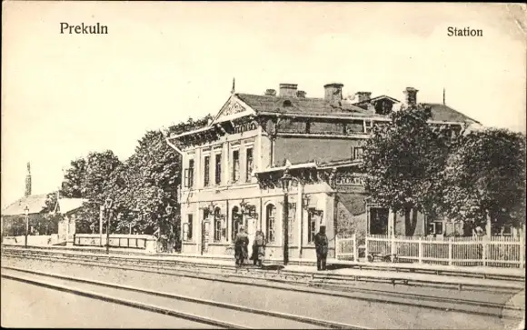 Ak Priekule Prekuln Lettland, Bahnhof, Gleisseite