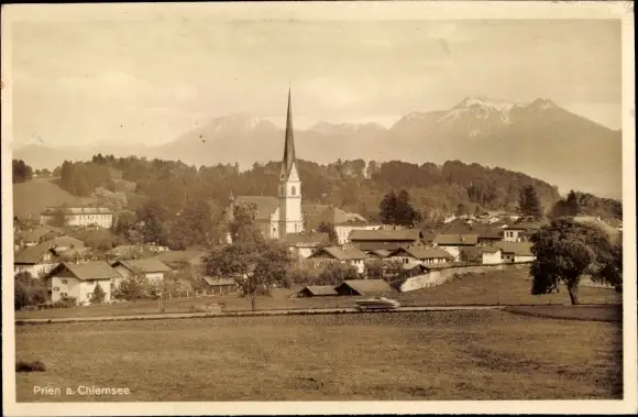 Ak Prien am Chiemsee Oberbayern, Teilansicht mit Kirche