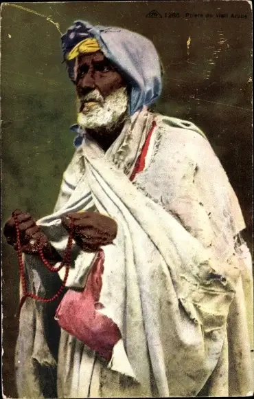 Ak Priere du vieil Arabe, alter Mann beim Gebet, Rosenkranz, Maghreb