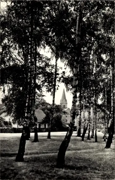 Ak Prieros Heidesee in der Mark, Ortspartie, Birkenwald