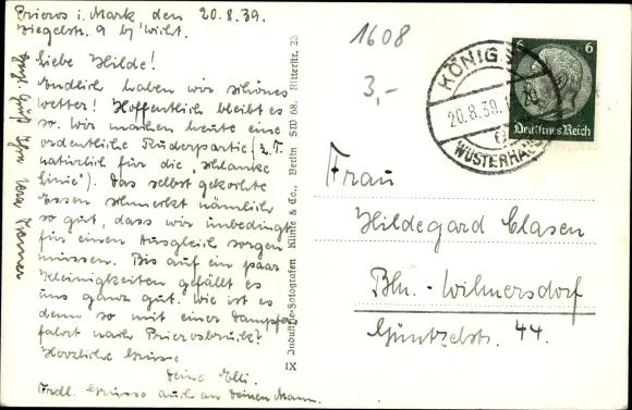 Zustand, siehe Scan, gelaufen, 1939 - ca 14 cm X 9 cm