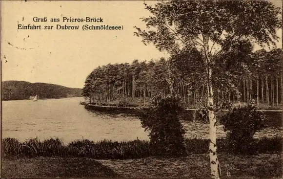 Ak Prierosbrück Gräbendorf Heidesee Brandenburg, Einfahrt zur Dubrow, Schmöldesee