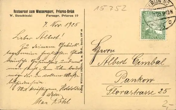 Zustand, siehe Scan, gelaufen, 1925- Besitzer: W. Roschinski - ca 14 cm X 9 cm
