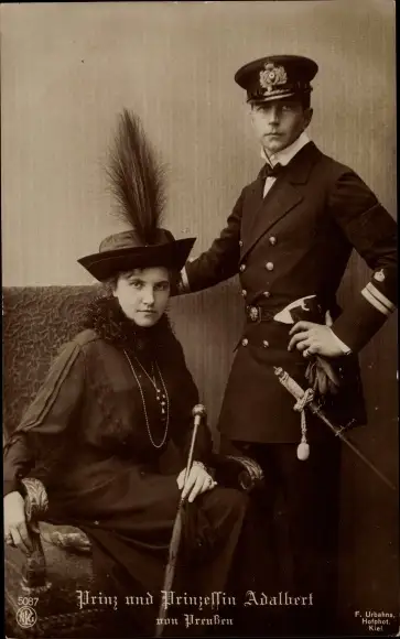 Ak Prinz Adalbert von Preußen, Adelheid von Sachsen Meiningen, Portrait, Uniform