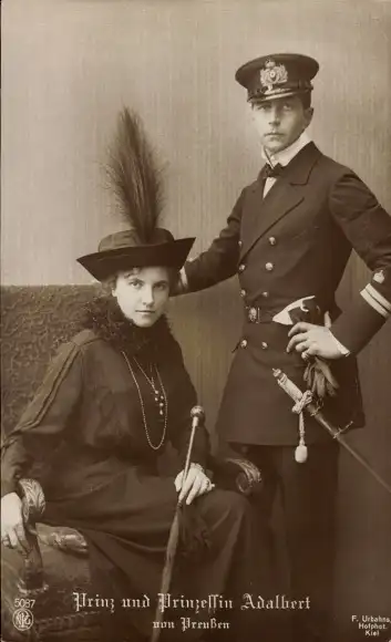 Ak Prinz Adalbert von Preußen, Adelheid von Sachsen Meiningen, Portrait, Uniform