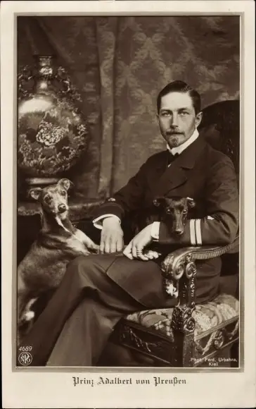 Ak Prinz Adalbert von Preußen, Hunde, Sitzportrait, NPG 4689