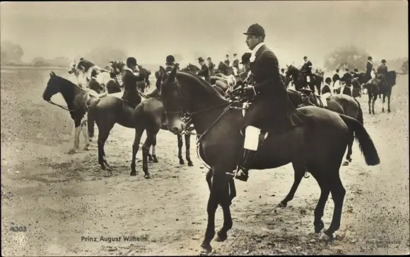 Ak Prinz August Wilhelm von Preußen zu Pferde, Jagdgesellschaft