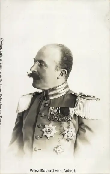 Ak Prinz Eduard von Anhalt, Portrait im Profil, Uniform, Orden