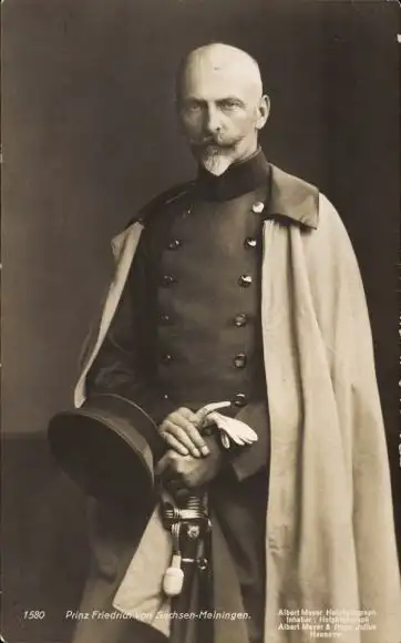 Ak Prinz Friedrich von Sachsen Meiningen, Portrait in Uniform, Mantel