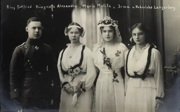 Ak Prinz Gottfried, Alexandra, Marie Melita, Irma, Adel Hohenlohe Langenburg